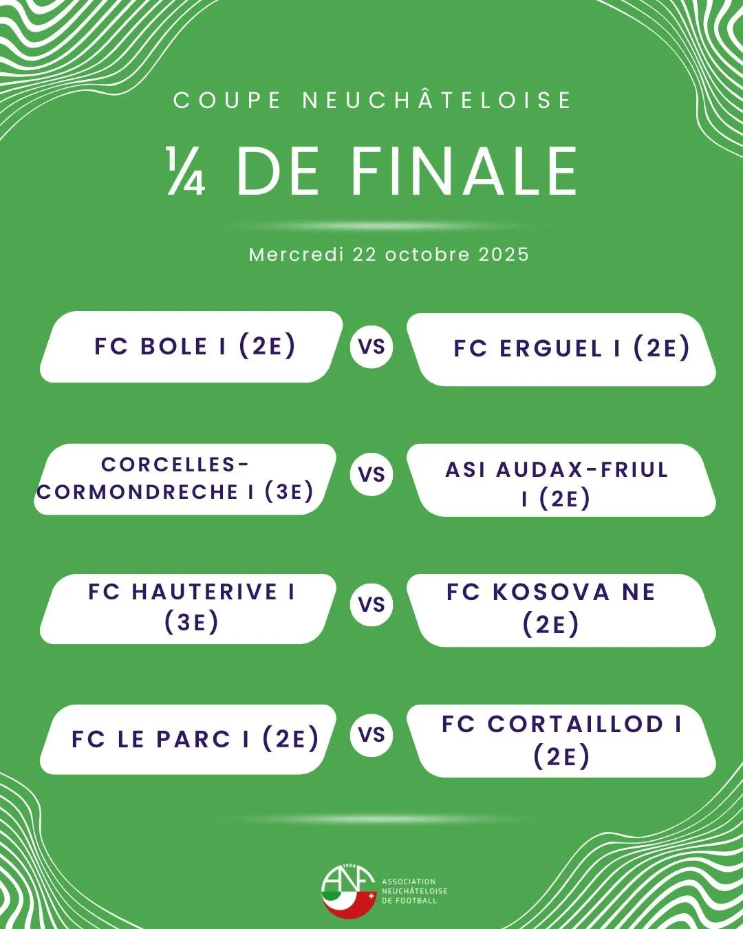 Tirage au sort des quarts de finale – Coupe Neuchâteloise 2025